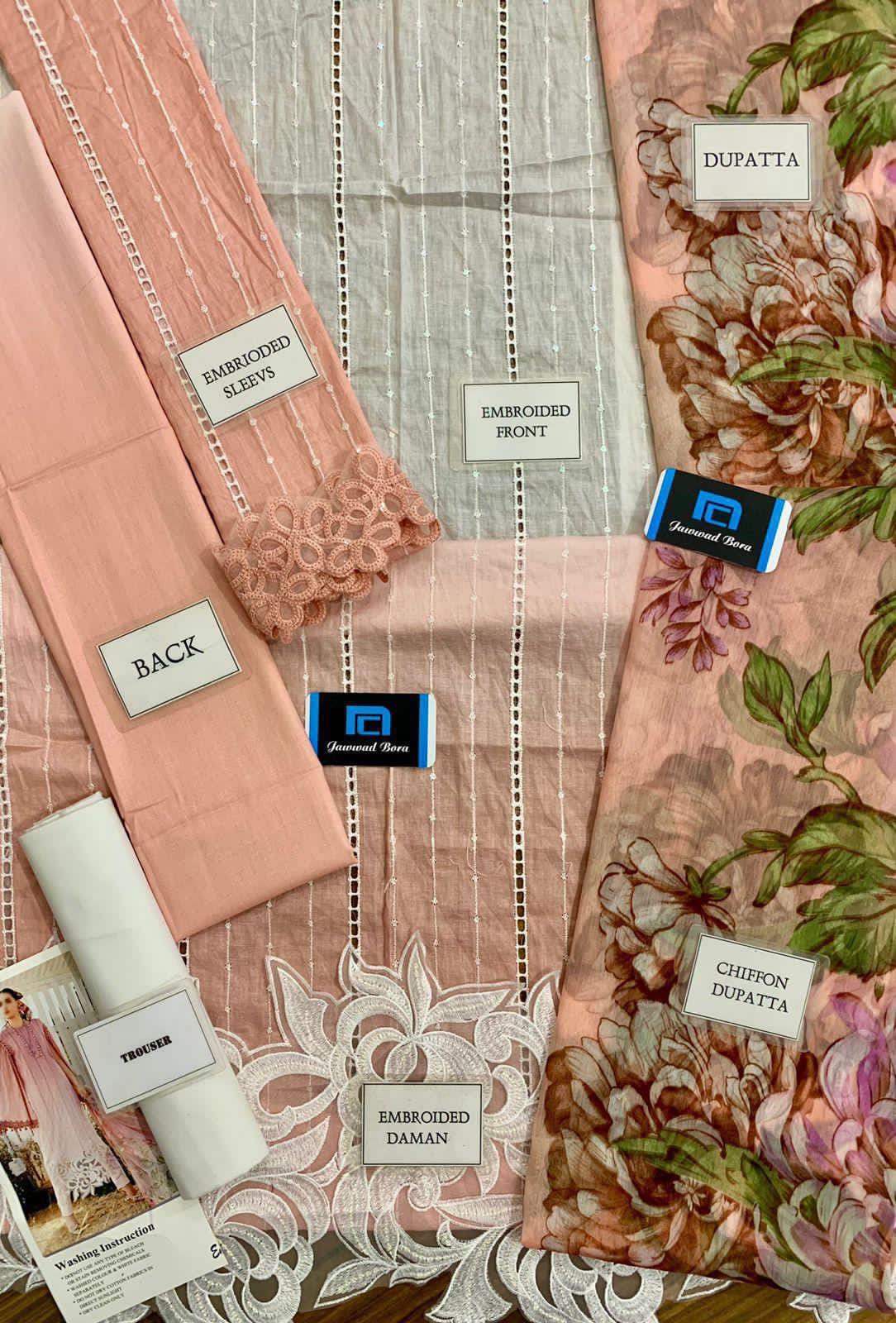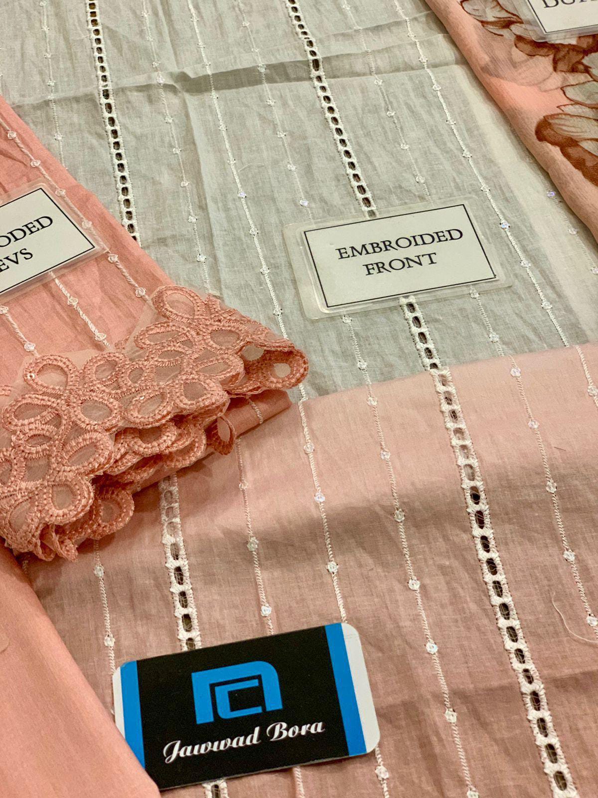 printed lawn front with fully heavy scifflie embroidered spengle work front with heavy embroidered spengle work daman boarder