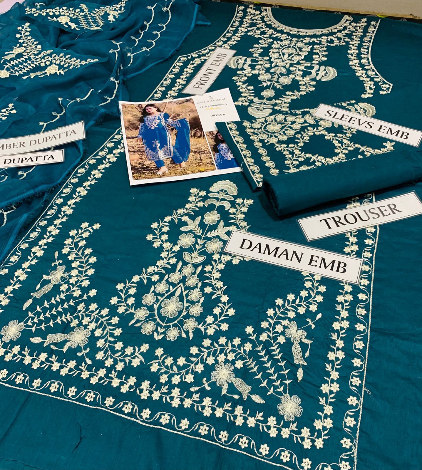 DUPATTA BAMBER CHIFFON FULL HEAVY EMB WORK & 4 corner Embroidered Bunch
